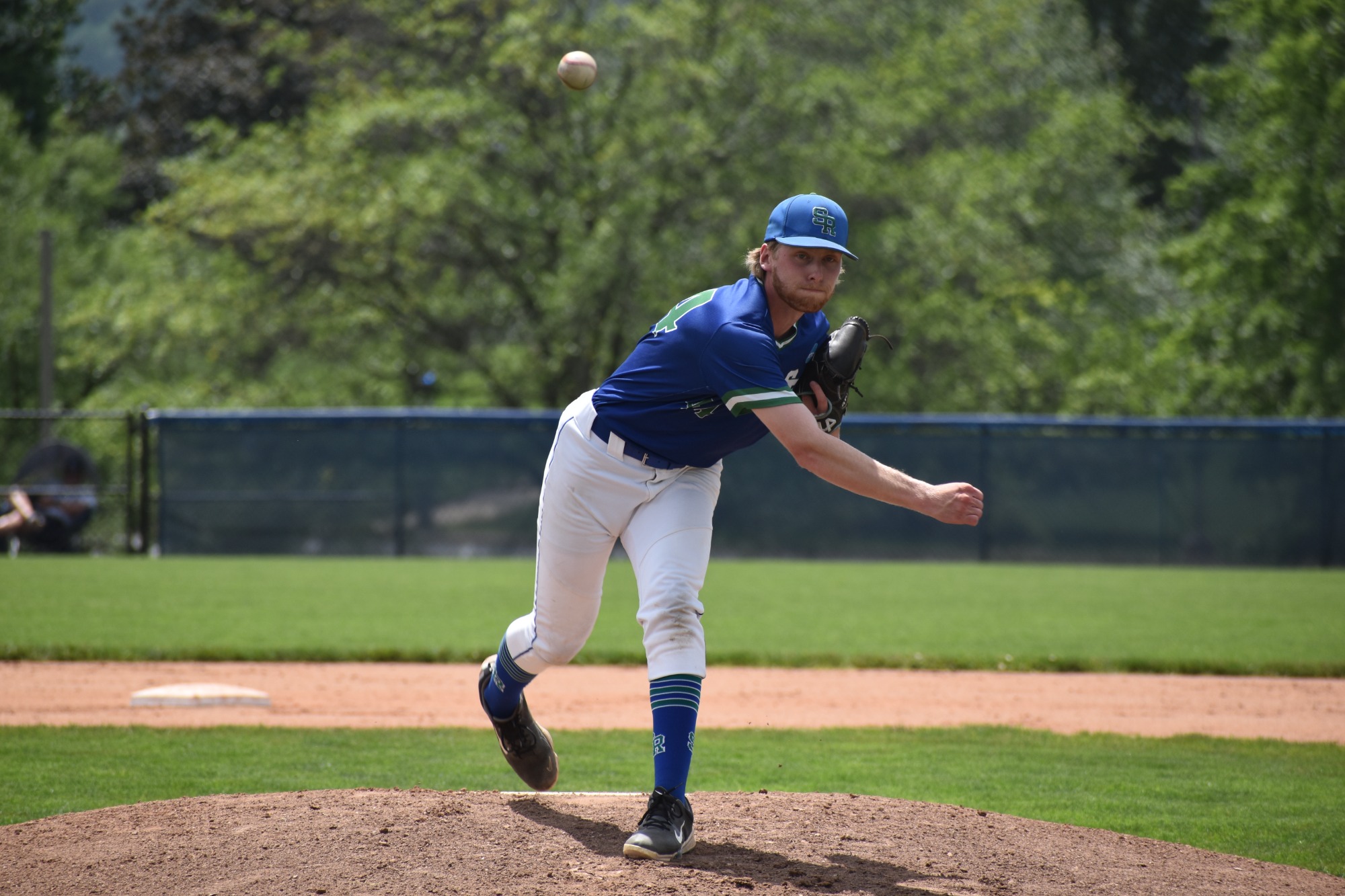 Graduate student Patrick Maybach (Saunderstown, R.I.) scattered six hits over six innings and struck out 10 Golden Bears' batters to earn the victory. Jake Balderston's (Hadley, Mass.) swing and miss to lead off the fifth inning became Maybach's 243rd career strikeout to place him atop the all-time list in Salve Regina baseball history, surpassing Scott Alexander's 242 Ks from 1998 to 2001. Andrew Roman (Monson, Mass.) pitched a perfect seventh in relief.